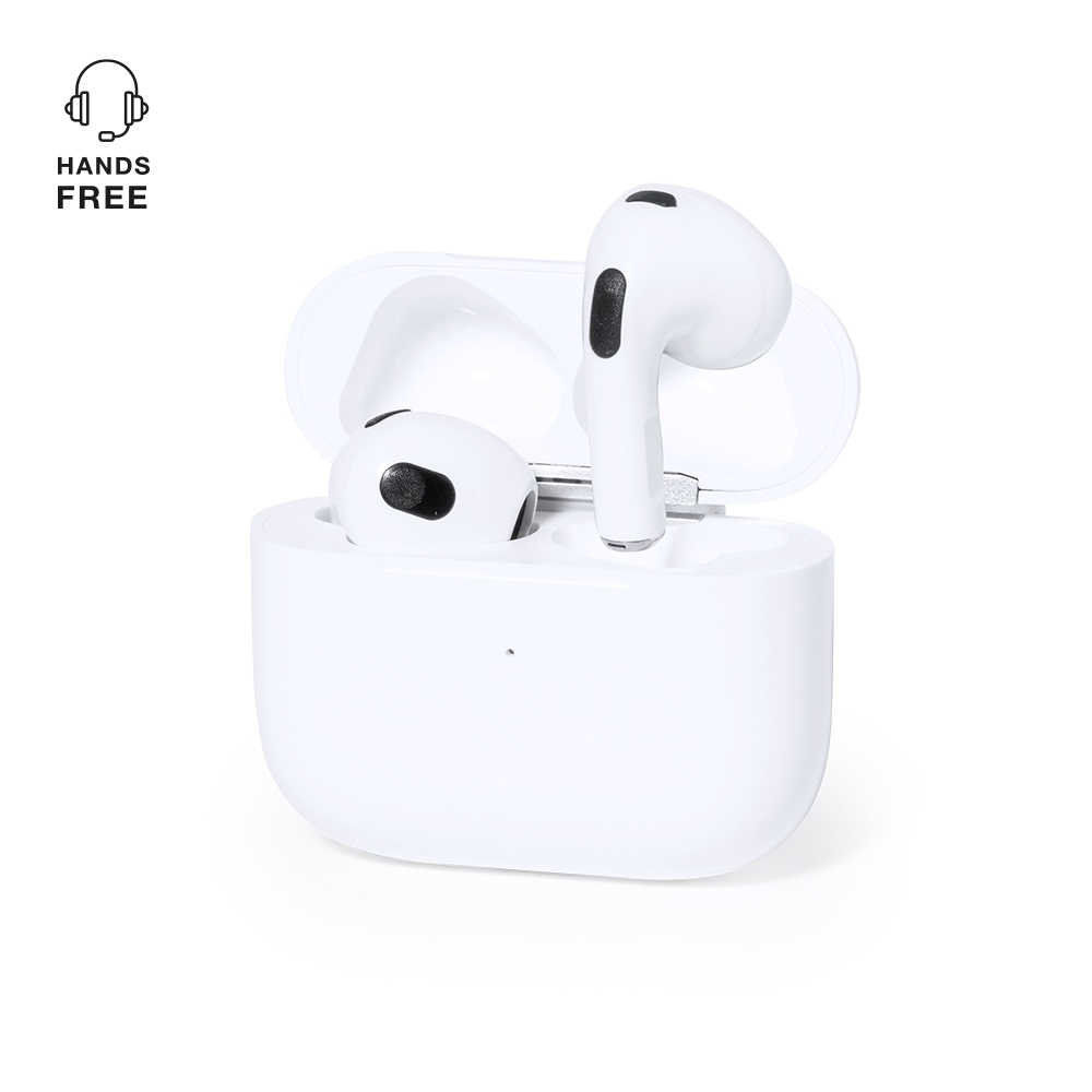 Ausinės su „Bluetooth® 5.3“ ryšiu ir laisvų rankų įranga. Ergonomiško dizaino, su ausinėje integruotu jutikliniu valdymo mygtuku ir atitinkamu įkrovimo pagrindu. Pateikiamos individualioje „kraft“ dizaino dėžutėje.