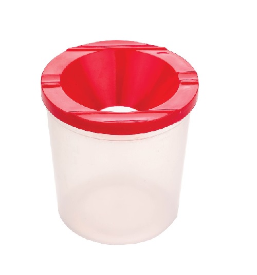 Plastikinis indelis su dangteliu skirtas teptukų skalavimui. Ant dangtelio yra grioveliai pasidėti teptukams. Tinka naudoti dailės pamokose arba piešimui namie.