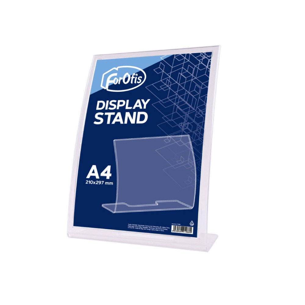 Lenktas „L” formos stovas skirtas reklamos ar informacijos pateikimui iš dviejų pusių. Pagamintas iš labai tvirto ir ypatingai skaidraus plastiko. Gali būti naudojamas viešbutyje, biure, mokykloje, ligoninėje, konferencijose, parduotuvėse ir t.t.