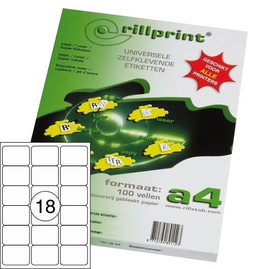 Lipnios etiketės A4/63.5 x 46.6 mm 100 lapų Rillprint 89106