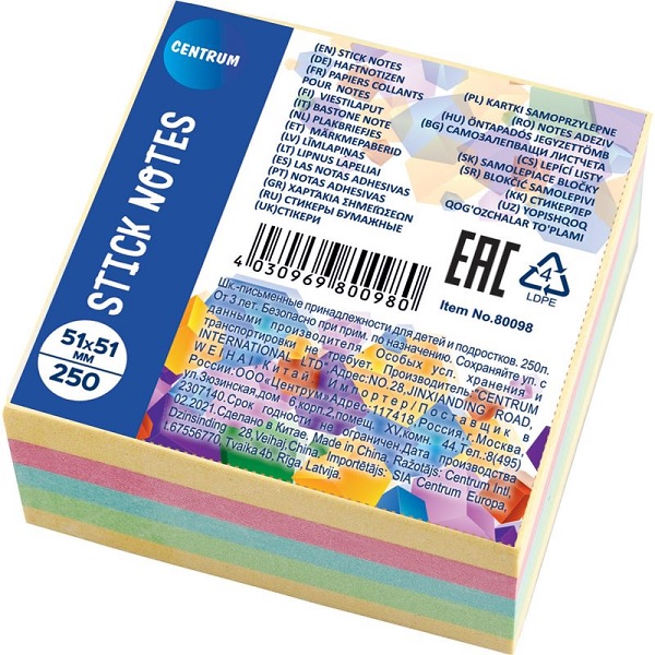 Lipnių lapelių kubas (250 l.) 51 x 51 mm 5 spalvos Centrum 80098