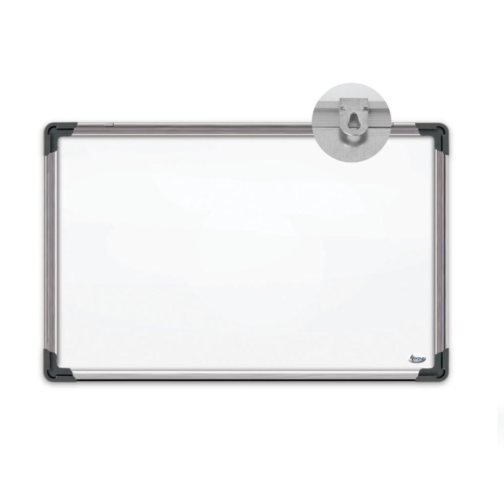 Balta magnetinė lenta su aliuminio rėmu ir plastikiniais kampais. Turi lentynėlę žymekliams laikyti. Naudojami žymekliai, skirti ant lentos rašyti, kurie po to lengvai nusivalo kempinėle. Lenta kabinama ant dviejų laikiklių.