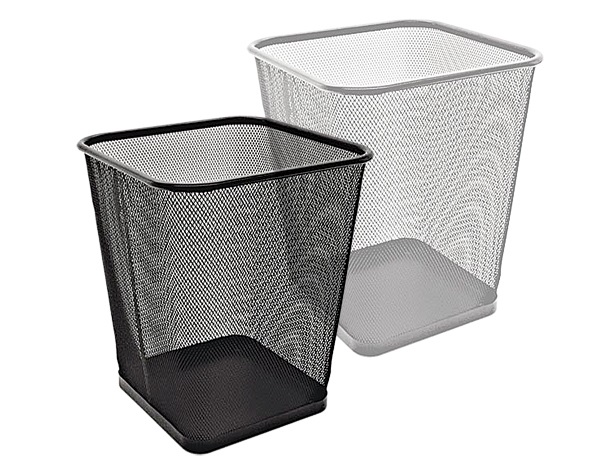 Šiukšlių dėžė, skirta smulkioms šiukšlėms, pagaminta iš metalinio tinklelio. Kvadratinė forma.