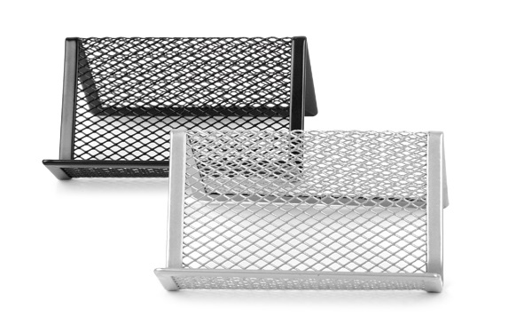 Kortelių laikiklis – dėklas pagamintas iš metalinio tinklelio. Skirtas vizitinėms, reklaminėms, informacinėms kortelėms laikyti. Telpa iki 30 kortelių.