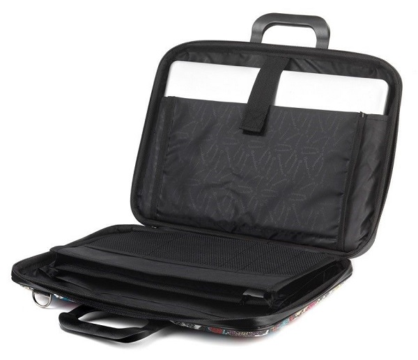 Itališko dizaino, madingas unisex tipo kompiuterio krepšys. Krepšys turi du tvirtus diržus kompiuterio iki 15.6″ sutvirtinimui, 3 skyrius dokumentams, užtrauktuku užsegamą vidinę kišenę, papildomos kišenės rašikliams ir kitokiems smulkiems daiktams, reguliuojamą bei nuimamą peties diržą ir pridėtas maišelis nuo dulkių. Krepšys pagamintas iš vinilo su grūdėtos odos imitacija, silikoninės rankenos.