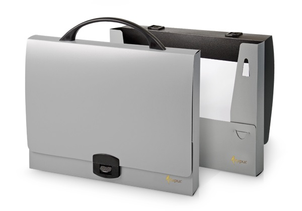 Plastikinė rankinė A4 formato dokumentams laikyti ir nešioti. Turi rankeną ir užsegimą. Vidus – be skyrių. Plastiko storis 0.9 mm.