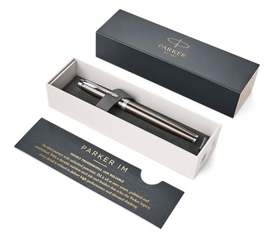 Labai profesionalus ir patikimas rašiklis. Idealus partneris, turintis neribotą potencialą, „Parker IM“ yra išmanus, poliruotas ir įsitvirtinęs. Su patvariu nerūdijančio plieno antgaliu ir apdailomis, atkartojančiomis „Parker“ palikimą, kiekviena detalė yra patobulinta, kad rašymo patirtis būtų visada patikima. Rašiklis puikiai tinka kaip dovana kiekvienai progai, pavyzdžiui, kalėdinei dovanai ar bet kokiam jubiliejui. Kiekviena įmonė iš to gali padaryti tikrai gražią „Parker“ dovaną darbuotojams ar reklamos tikslams. Korpusas tamsaus espresso spalvos ir padengtas laku, papildytas chromuotomis apdailos detalėmis. Rašikliui naudojama keičiama Parker šerdelė. Parduodamas prabangioje Parker dovanų dėžutėje.