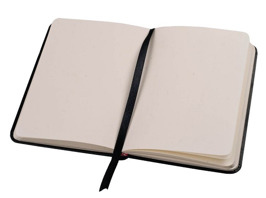 Užrašų knygutė kietu, dekoruotu kartoniniu viršeliu su gumele. Yra medžiaginė juostelė puslapiui pažymėti