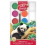 Akvareliniai dažai su UV apsauga ryškumui. Akvarelės spalvos lengvai maišomos tarpusavyje, tolygiai pasiskirsto ant popieriaus ir dėka UV apsaugos yra atsparios saulės spinduliams. Dažai pagaminti vandens pagrindu, netoksiški, lengvai išplaunami. Plastikinėje dėžutėje yra teptukas iš natūralaus ponio plauko ir paletė spalvų maišymui.