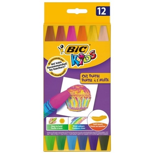 Aliejinės kreidelės Kids Oil Pastel 12 spalvų BIC