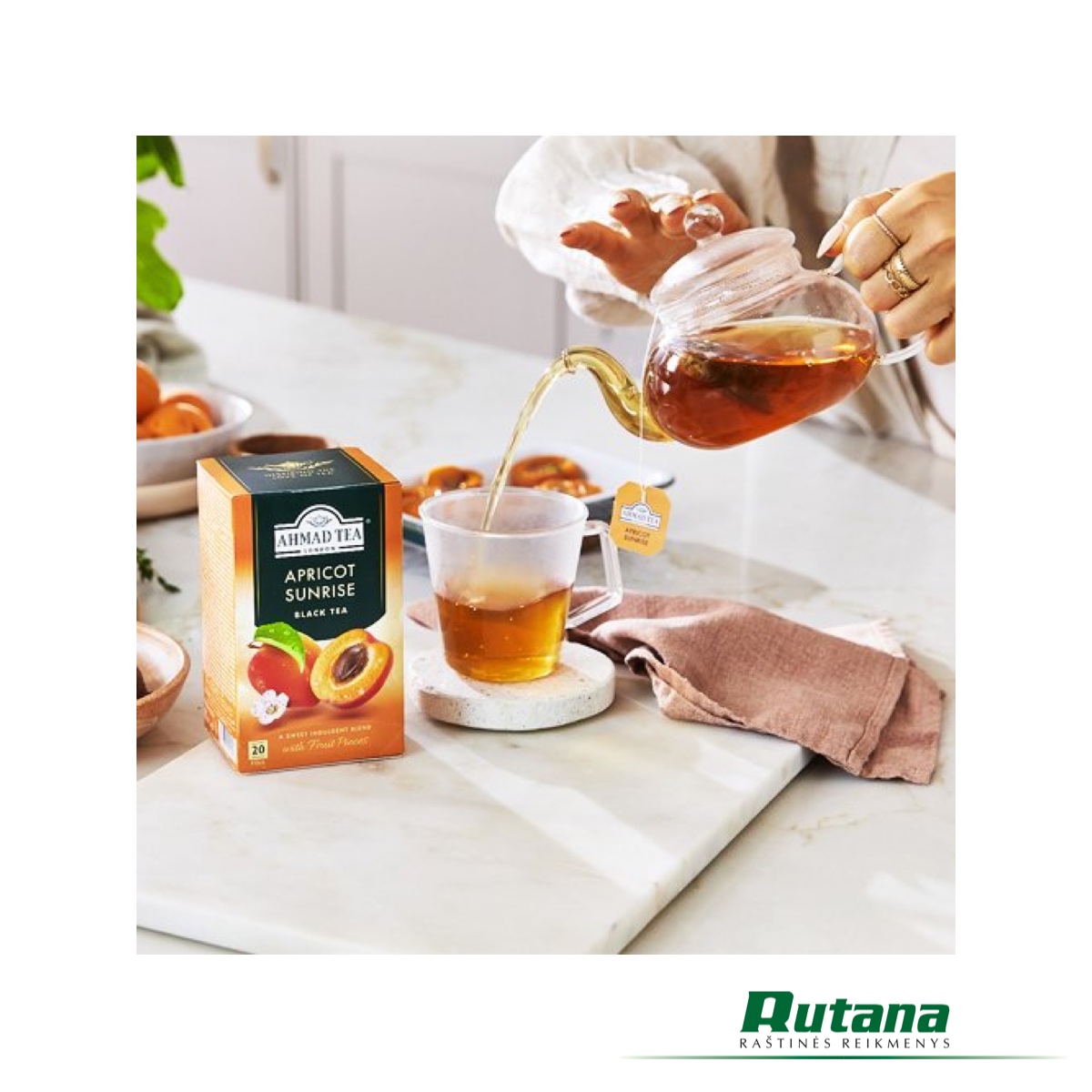 Kiekvienas arbatos pakelis yra įvyniotas į foliją, kad aromatai išliktų, todėl kiekvieną kartą arbata bus tobulai paruošta. Abrikosų skonis maloniai nuteikia vasariškai bet kuriuo metų laiku. Mėgaukitės užplikyta karštu vandeniu, kad paragautumėte vaisinės, valančios arbatos, arba pabandykite ją užmerkti su cukrumi ir atskiesti šaltu vandeniu, kad pasigamintumėte puikią abrikosų šaltąją arbatą. Tai puikus gėrimas troškuliui malšinti saulėtą popietę sode.