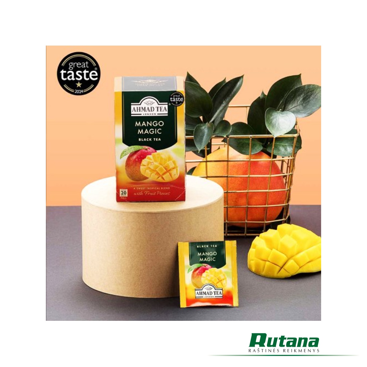 Tada pridėkite tikrų mangų gabalėlių ir firminio mangų aromato, kad gėrimas įgautų saldžiai egzotiško vasariško skonio. Tai publikos simpatijas pelnęs derinys, kuris jau daugiau nei 20 metų yra Ahmad Tea kolekcijos dalis.