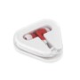 Ausinės su laidu plastikinėje, trikampio formos dėžutėje.