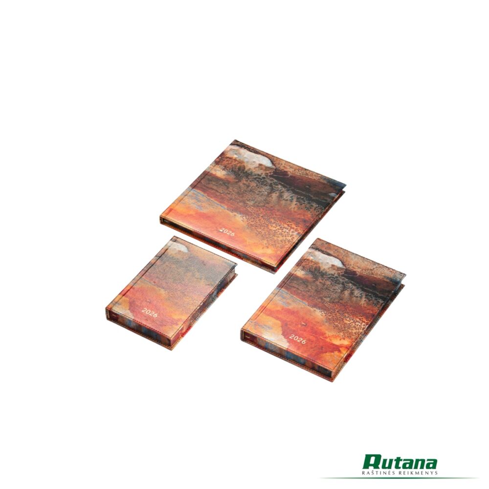 Darbo knyga 2026 metams, skirta kasdieninių darbų planavimams ir įvairiems užrašams pasižymėti.