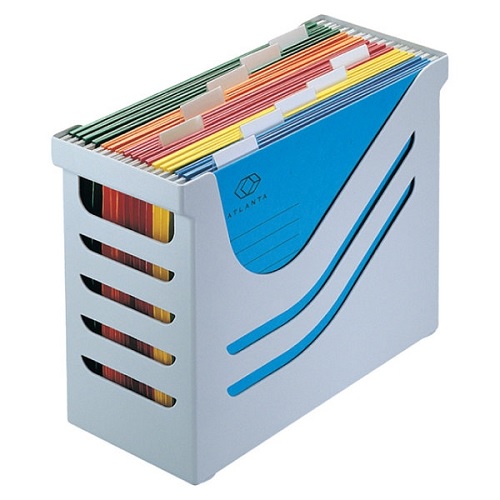Dėžė, pagaminta iš plastiko, skirta A4 formato kartotekiniams vokams laikyti. Komplekte su dėže yra 5 vnt. kartotekinių vokų.