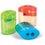 Plastikinis drožtukas su 2 geležtėm ir drožlių surinkimo konteineriu. Galima drožti klasikinius, tribriaunius ir storus spalvotus Jumbo pieštukus. Tinkamas biure ir mokykloje.