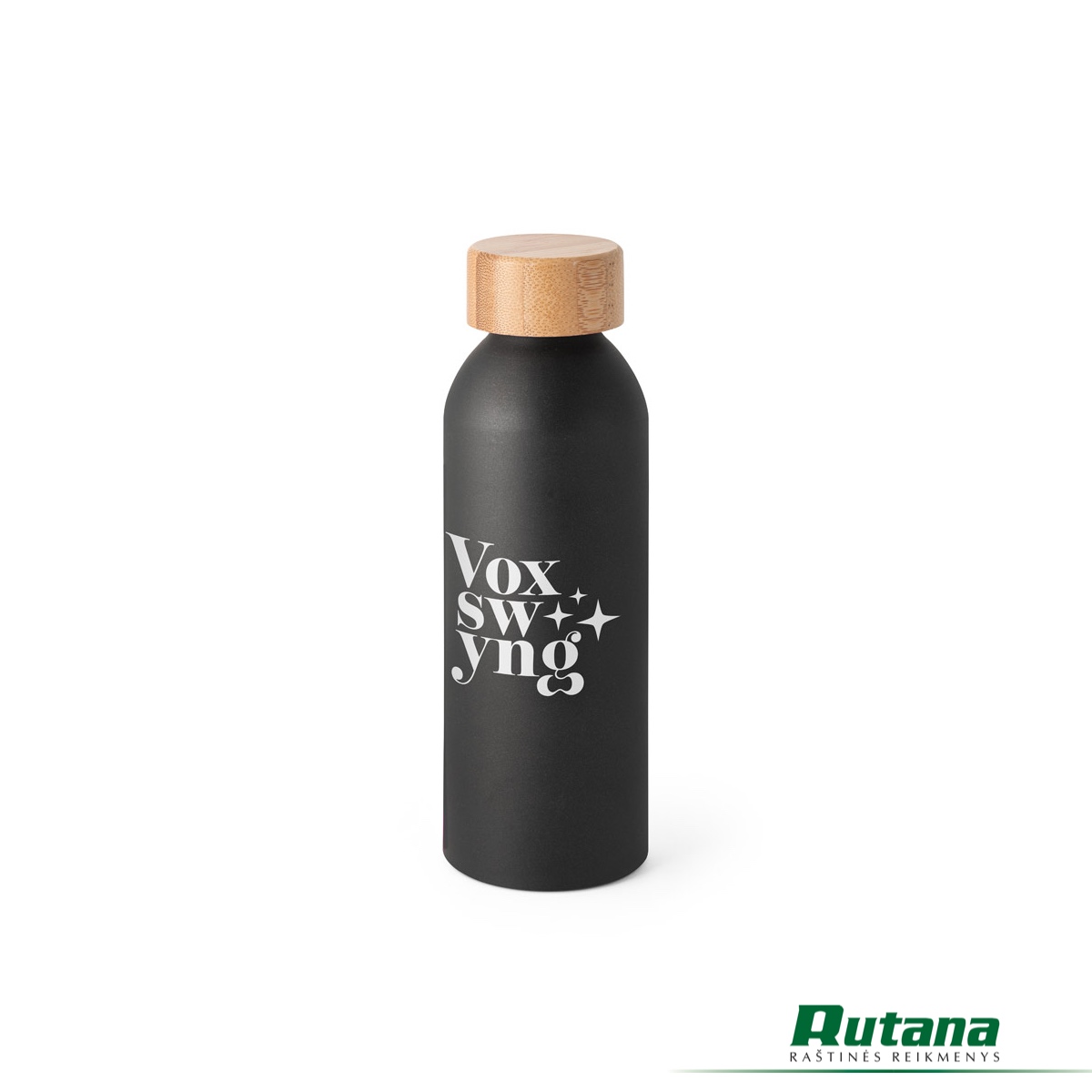 Aliuminio butelis su bambukiniu dangteliu ir matiniu paviršiumi su blizgučiais. Kadangi gaminys pagamintas iš natūralių medžiagų, spalva ir spaudos rezultatas gali skirtis priklausomai nuo gaminio.
