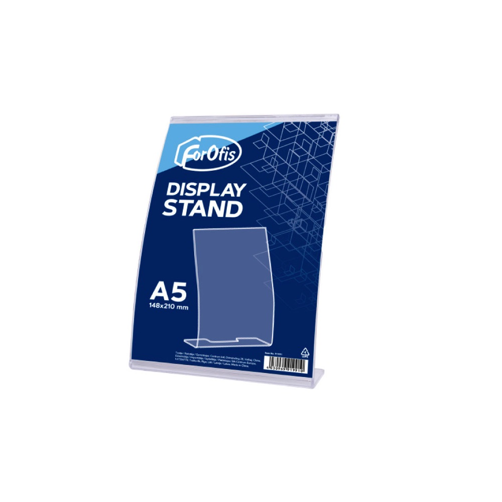 Lenktas „L” formos stovas skirtas reklamos ar informacijos pateikimui iš dviejų pusių. Pagamintas iš labai tvirto ir ypatingai skaidraus plastiko. Gali būti naudojamas viešbutyje, biure, mokykloje, ligoninėje, konferencijose, parduotuvėse ir t.t.