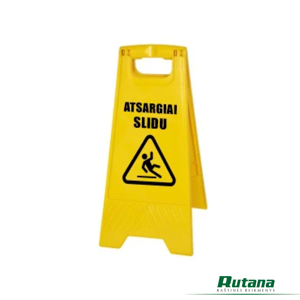 Trikampis įspėjamasis stovas „Atsargiai slidu” pagamintas iš tvirtos plastmasės.