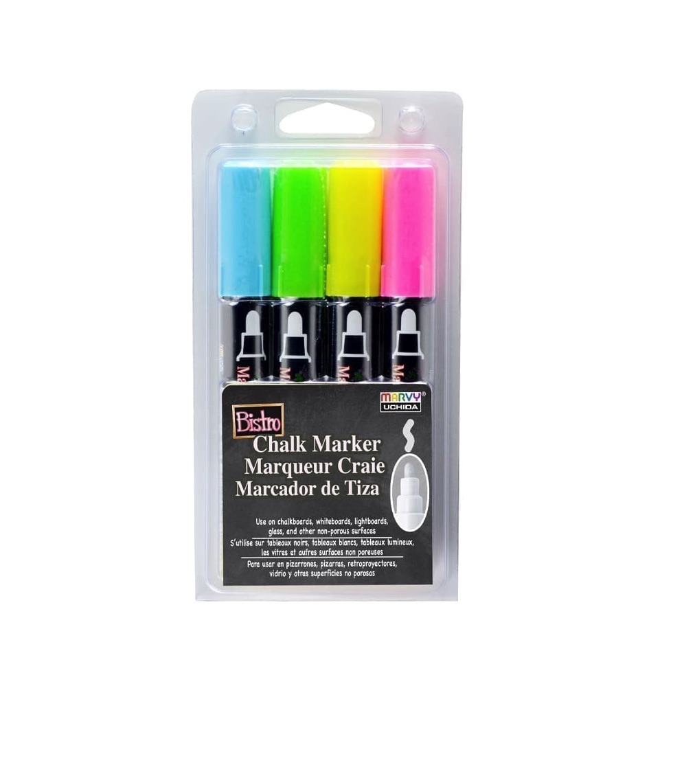 Kreidinių žymeklių rinkinys „Bistro” 4 fluorescencinės spalvos Marvy 480-4H