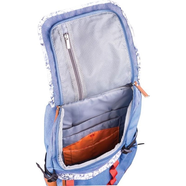 Kuprinė pasiūta iš kokybiško poliesterio 210D, atspari vandens praleidimui ir subraižimui. Turi 2 skyrius: pagrindinį ir priekyje su užtrauktuku, šonuose yra kišenės. Yra patogi rankena, skirta pakabinimui arba nešti ranka. Reguliuojamas petnešų ilgis.