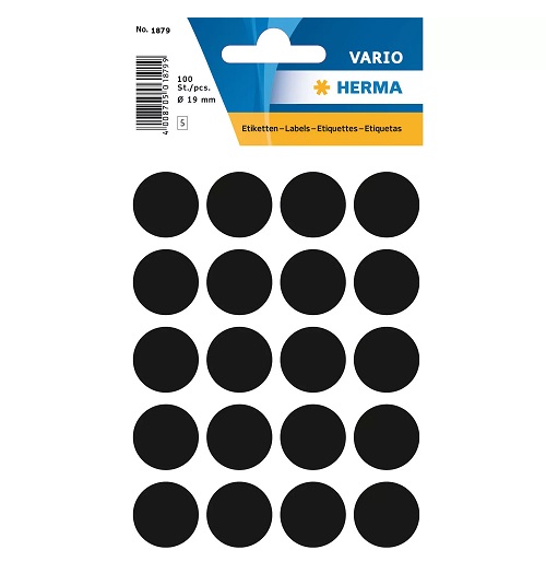 Lipnios etiketės apvalios 19mm 100vnt. juodos Herma 1879