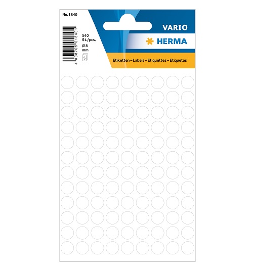 Lipnios etiketės apvalios 8mm 540vnt. baltos Herma 1840