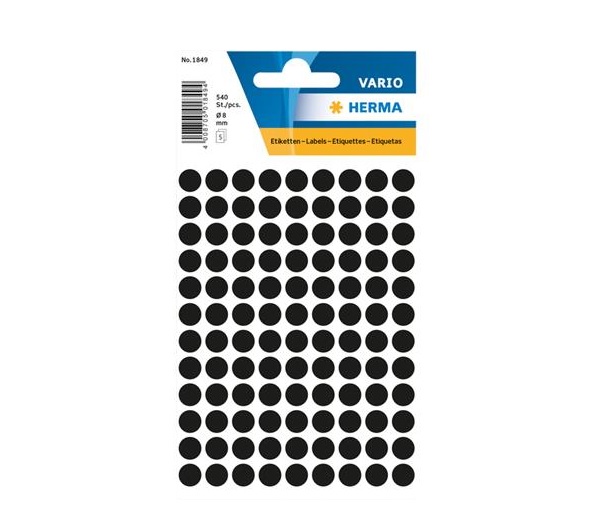 Lipnios etiketės apvalios 8mm 540vnt. juodos Herma 1849