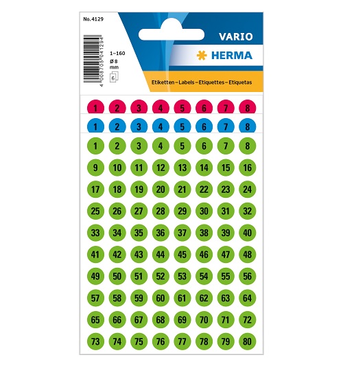 Lipnūs apvalūs skaičiai 1-160 8mm įv. spalvų Herma 4129