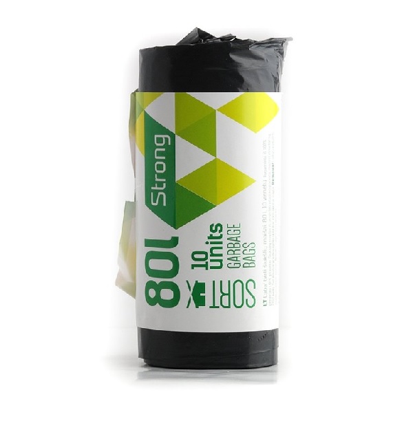 Maišai šiukšlėms 80 litrų 10 vnt. juodi Sortex