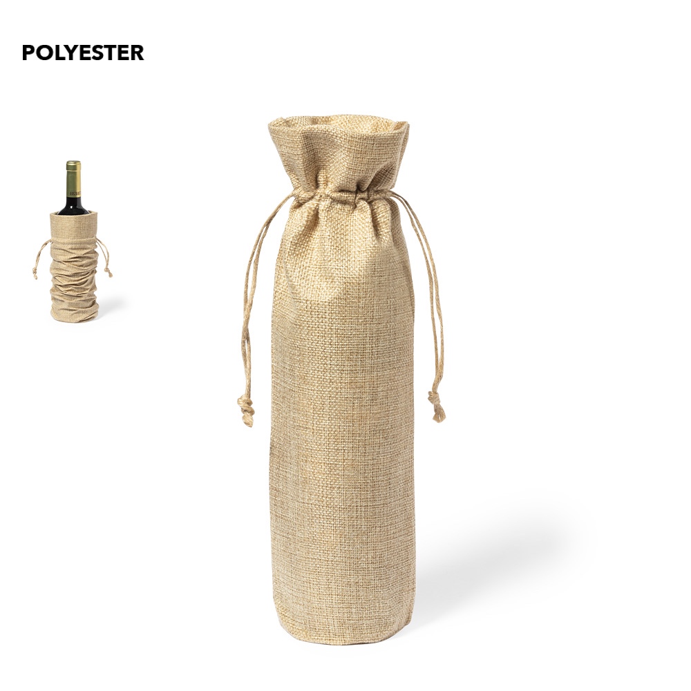 Gamtos įkvėptas butelių maišelis. Su džiuto raišteliu užsegimu, tinka 750 ml buteliams.