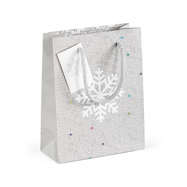 Maišelis iš dengto popieriaus su blizgia plastifikacija. Pagamintas iš kartoninio pagrindo, su kortele užrašui. Skirtas dovanų įteikimui ar gražiam įpakavimui.