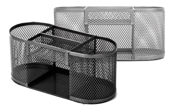 Penkių skyrių pieštukinė pagaminta iš metalinio tinklelio. Du skyriai skirti rašymo ir biuro reikmenims, vienas skyrius – užrašų lapeliams, o kitos dvi dalys skirtos smulkioms kanceliarijos priemonėms. Parduodama neužpildyta reikmenimis.