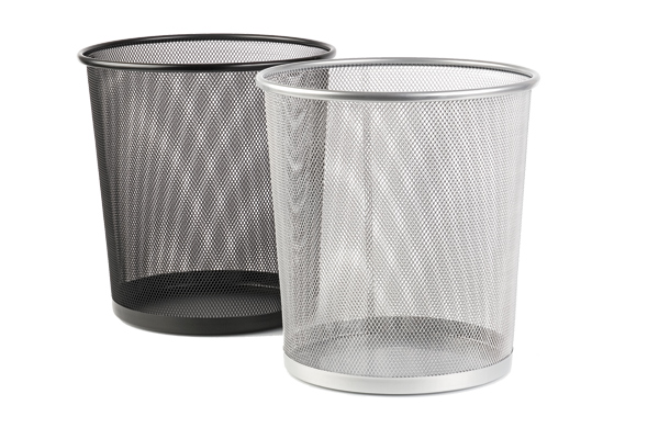 Šiukšlių dėžė, skirta smulkioms šiukšlėms, pagaminta iš metalinio tinklelio. Apvali forma.