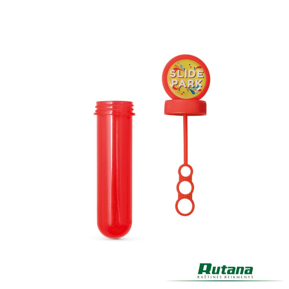Plastiko tūbelė su muilo burbulais.