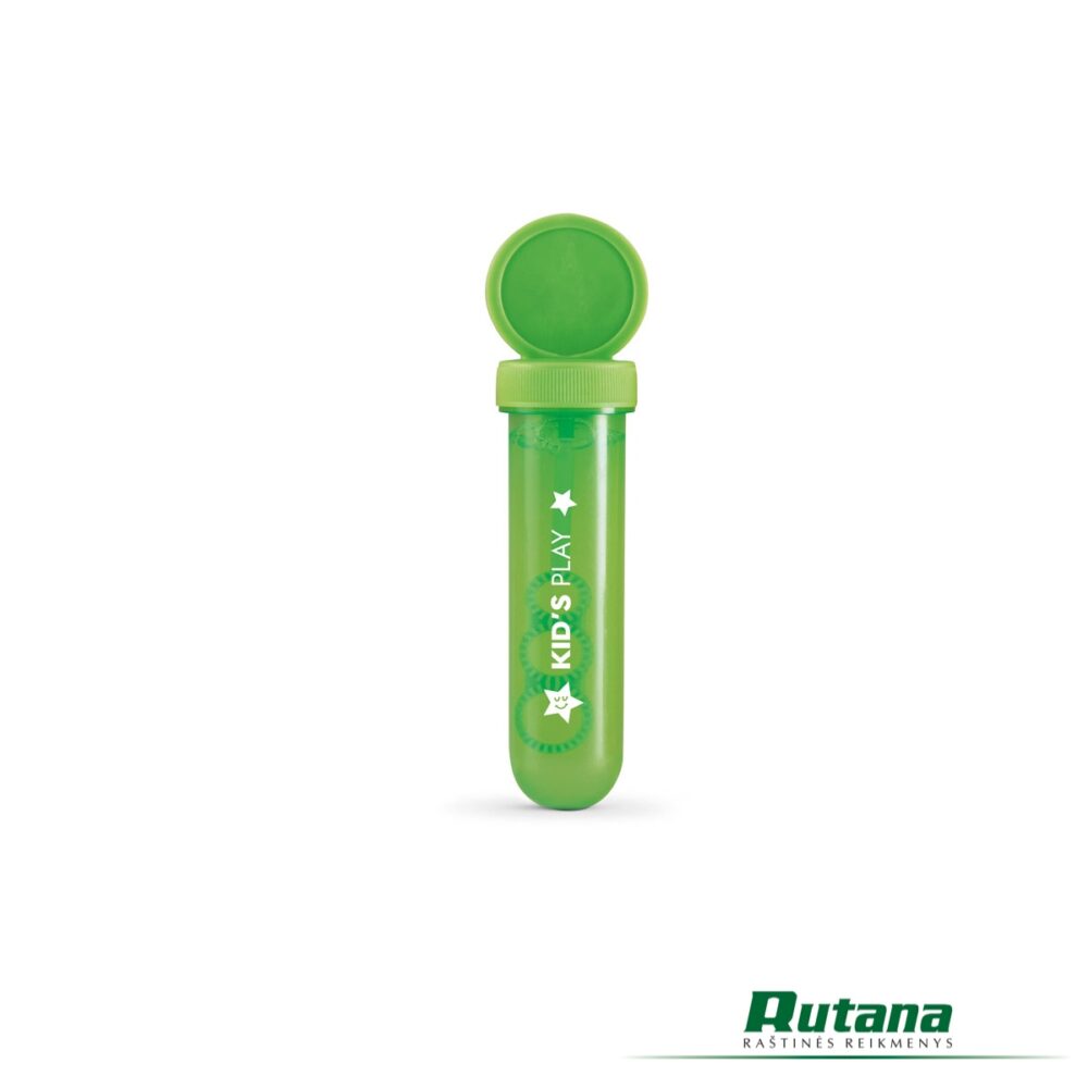 Plastiko tūbelė su muilo burbulais.