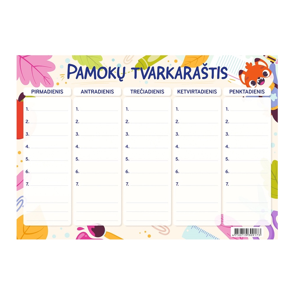 HomeProduktaiMokyklinės prekėsKitos mokyklinės prekėsPamokų tvarkaraštis A5 „...