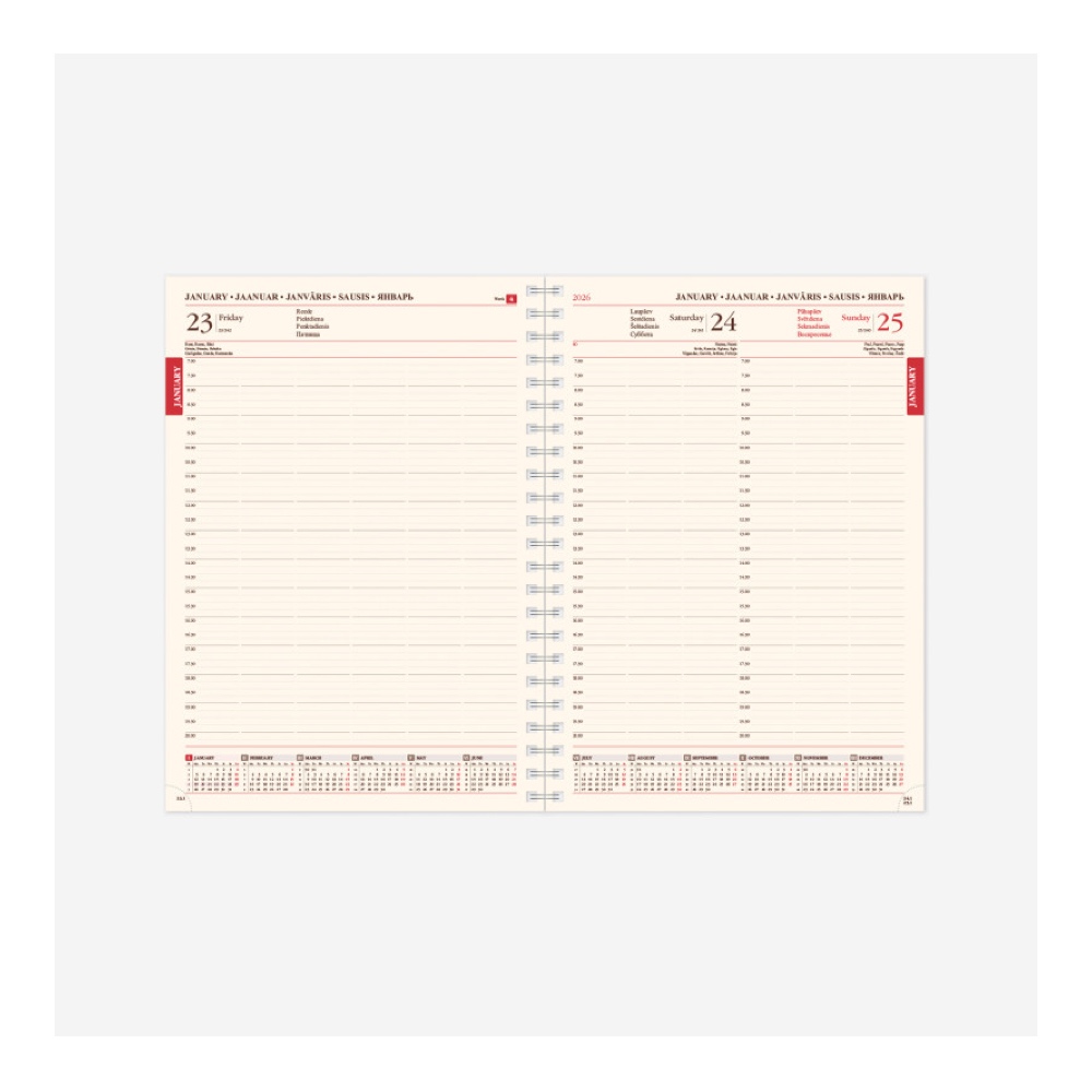 Papildas – kalendorius 2026 metams, skirtas kasdieninių darbų planavimams ir įvairiems užrašams pasižymėti, tinkamas Senator Day tipo kalendoriams. Turi skaidrų plastiko viršelį.