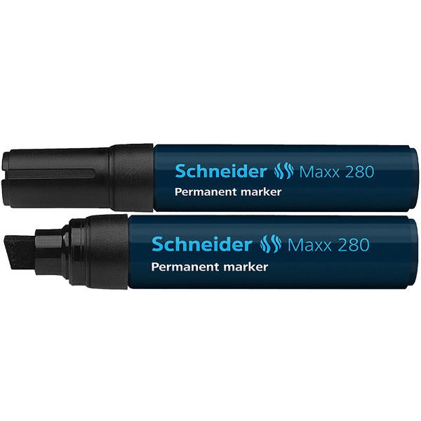 Permanentinis žymeklis skirtas rašyti ant kartono, stiklo, metalo, popieriaus, plastiko, medienos ir kitų įvairių paviršių. Žymeklio rašalas greitai džiūsta, atsparus vandeniui ir karščiui. Neuždžiūna paliktas atidarytas 2 – 3 dienas. Kirsta galvutė. Pasibaigus rašalui, žymeklį galima užpildyti Schneider rašalu Maxx 650.