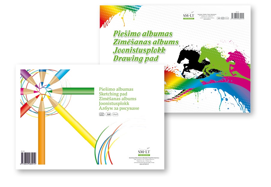 Piešimo albumas skirtas piešti akvarele, guašu, pieštukais ir flomasteriais.