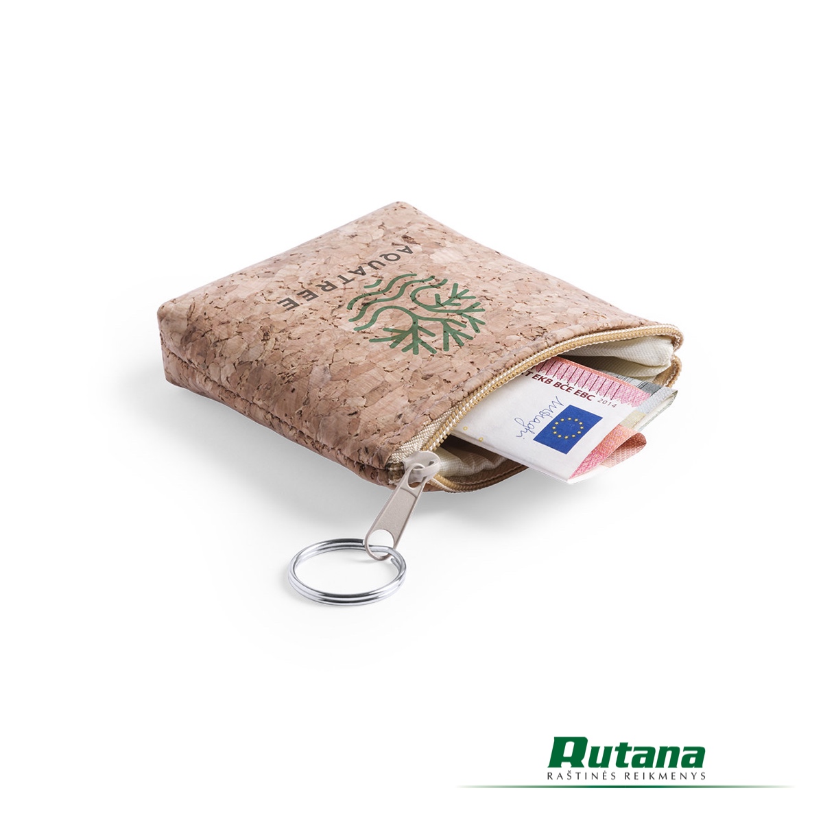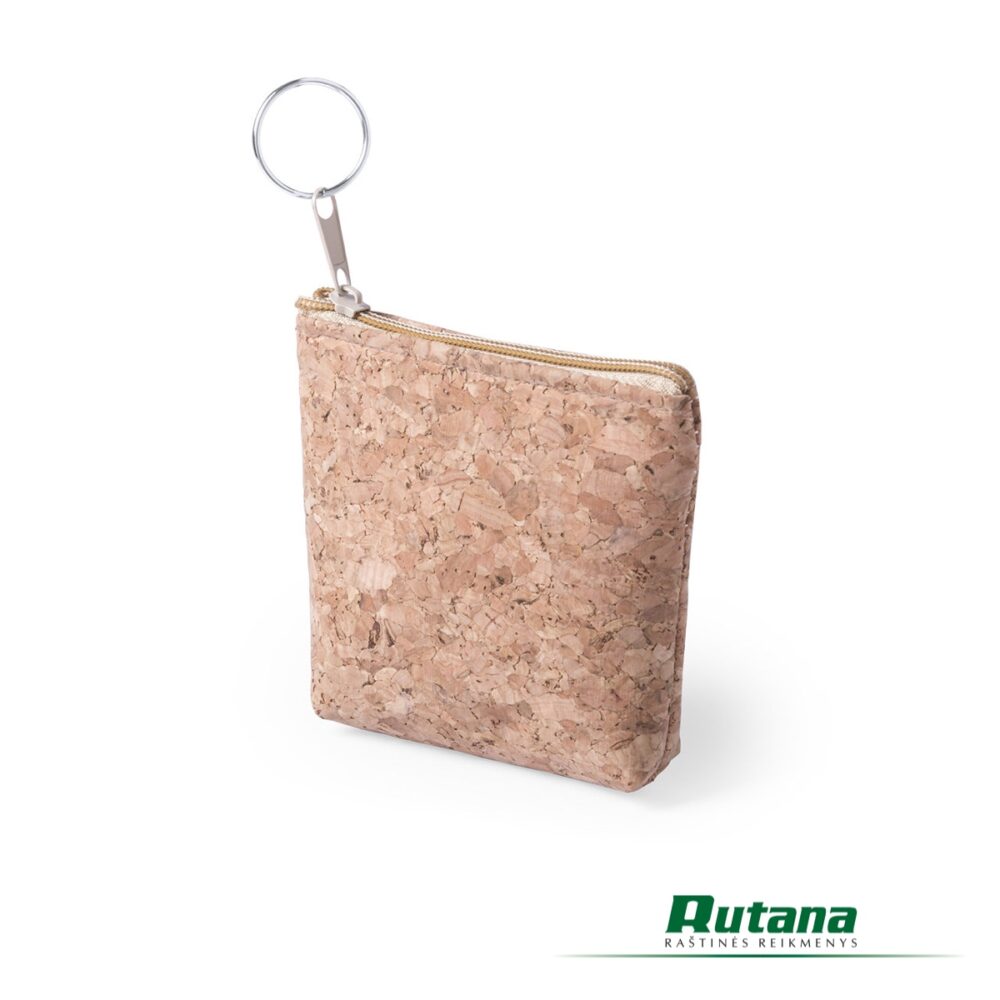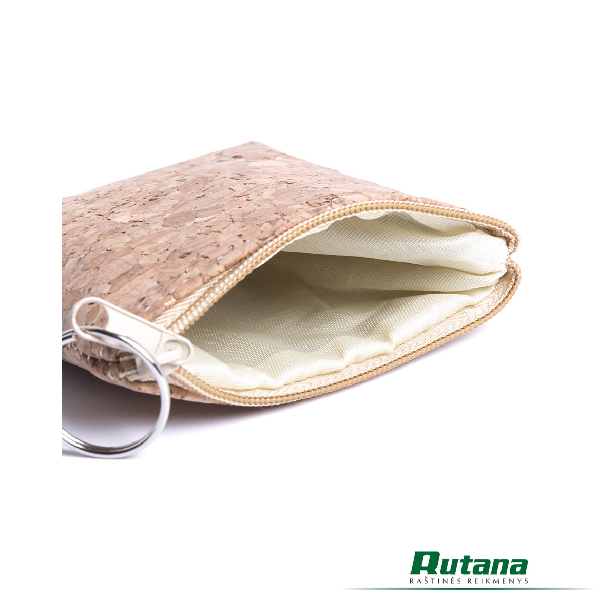 Ekologiška, kvadratinio dizaino piniginė iš natūralios kamštinės medžiagos su minkštu vidiniu pamušalu. Pagrindinis skyrius su atitinkamos spalvos užtrauktuku ir raktų pakabuku. Su vidiniu pamušalu.