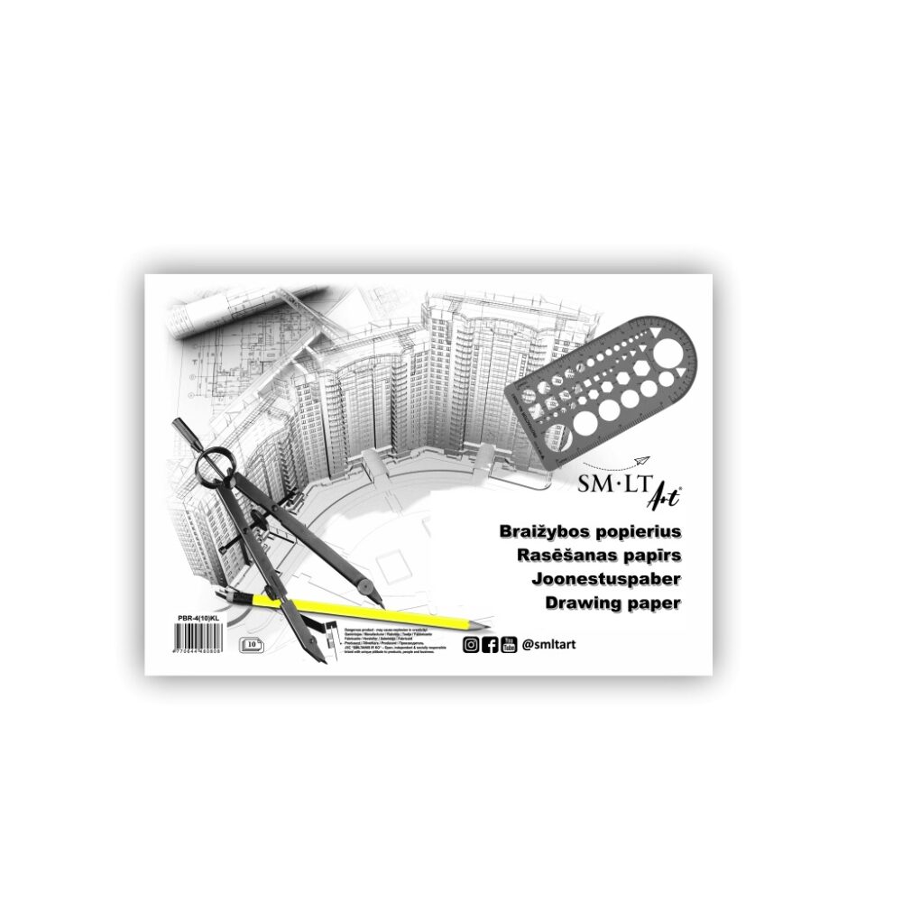 Klijuotas, balto popieriaus sąsiuvinis skirtas braižybai.
