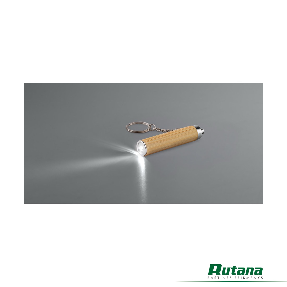 Bambuko ir ABS raktų pakabukas su LED žibintuvėliu. Pridedamos 3 vnt. LR41 baterijos. Tiekiamas dovanų dėžutėje iš kraftpopieriaus. Kadangi gaminys pagamintas iš natūralių medžiagų, spalva ir spausdinimo rezultatas gali skirtis priklausomai nuo gaminio.