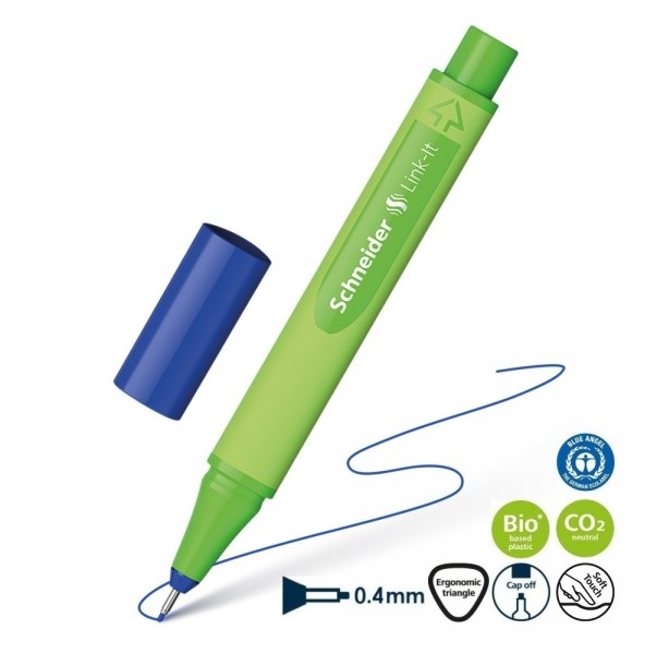 Pirmasis rašiklis – lineris su sumania sistema, leidžiančia įvairius derinius panaudojimui. Apdovanotas žinomiausiu pasaulyje ekologiniu ženklu „Mėlynasis angelas“ už ypač tausojančią išteklius ir aplinką tausojančią gamybą. Galima lengvai susieti ne tik skirtingas mėgstamas spalvas, bet ir skirtingas Link-It rašymo sistemas. Rašalas neišdžiūsta, net jei dangtelis nuimtas 2 – 3 dienas. Gumuotas ergonomiškas ir trijų kraštų rašiklio korpusas idealiai tinka ramiam rašymui. Kadangi dangtelis tvarkingai priglunda prie korpuso galo, jį galima patogiai laikyti ir kaip atskirą rašiklį. Jis nerieda ant stalo, o plonas dizainas puikiai telpa į mokinių rašiklių penalus atskirai arba susietas su kita Link-It tipo rašymo priemone. Korpusas pagamintas iš 88 % biologinio plastiko. Link-It gaminamas be CO2. Tinkamas naudojimui nuo 3 metų vaikams.