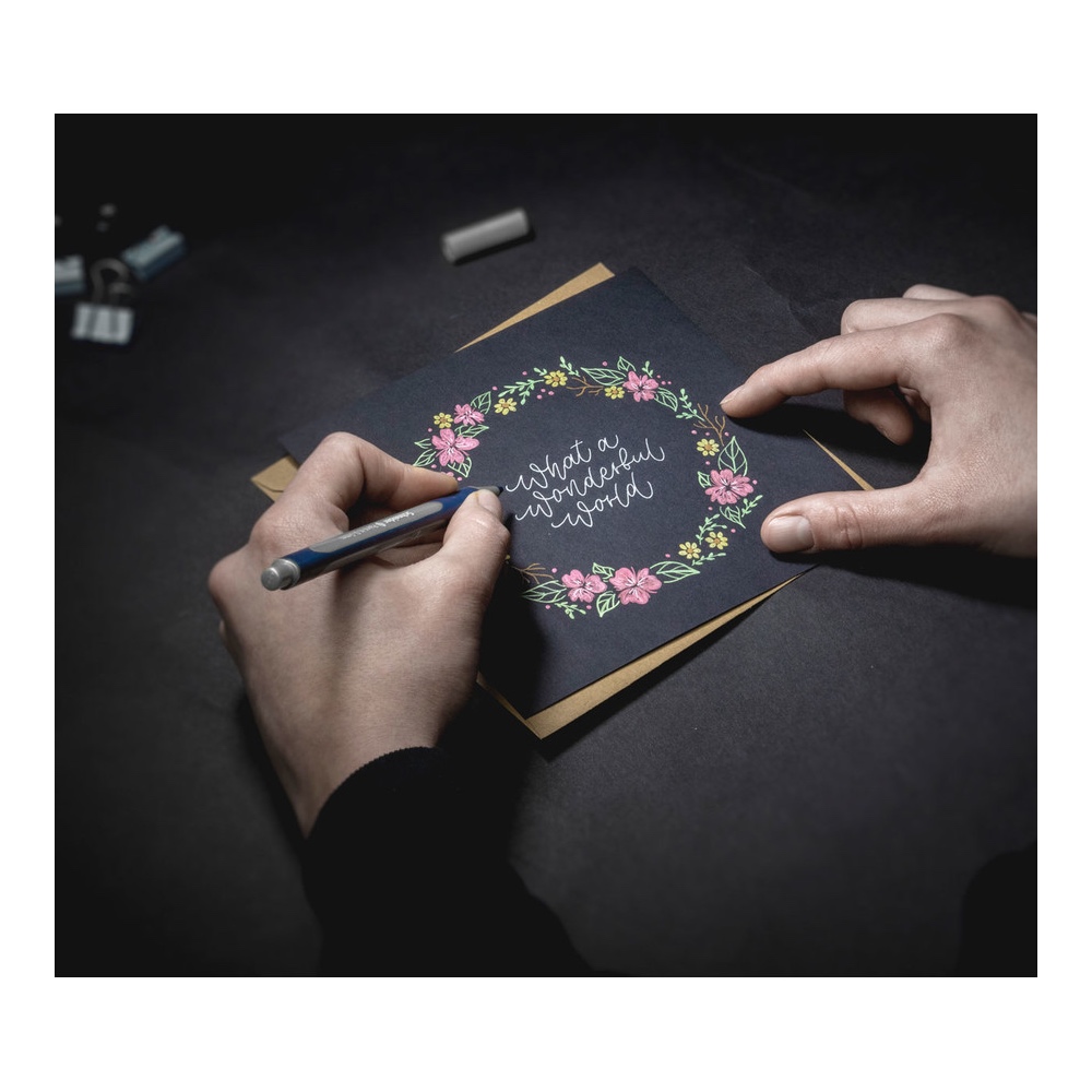 Metaliko lineris naujausioms tapybos, piešimo, rašymo ar raidžių galimybėms su 88 % biologišku plastiko korpusu. Ultra-Smooth antgalis tiksliai perneša metaliko rašalą ant popieriaus. Nereikia kratyti ar pumpuoti – tiesiog nuimkite dangtelį ir pradėkite dirbti. Idealiai tinka dengtam popieriui, pavyzdžiui, kvietimams ir sveikinimo atvirukams arba kitiems lygiems ir nesugeriantiems paviršiams. Greitai džiūstantis tušas ir silpnas kvapas.