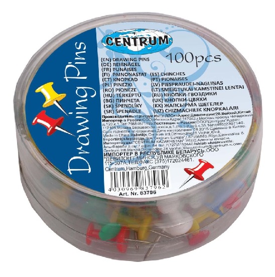 Smeigtukai kamštinei lentai 100vnt. Centrum 83796