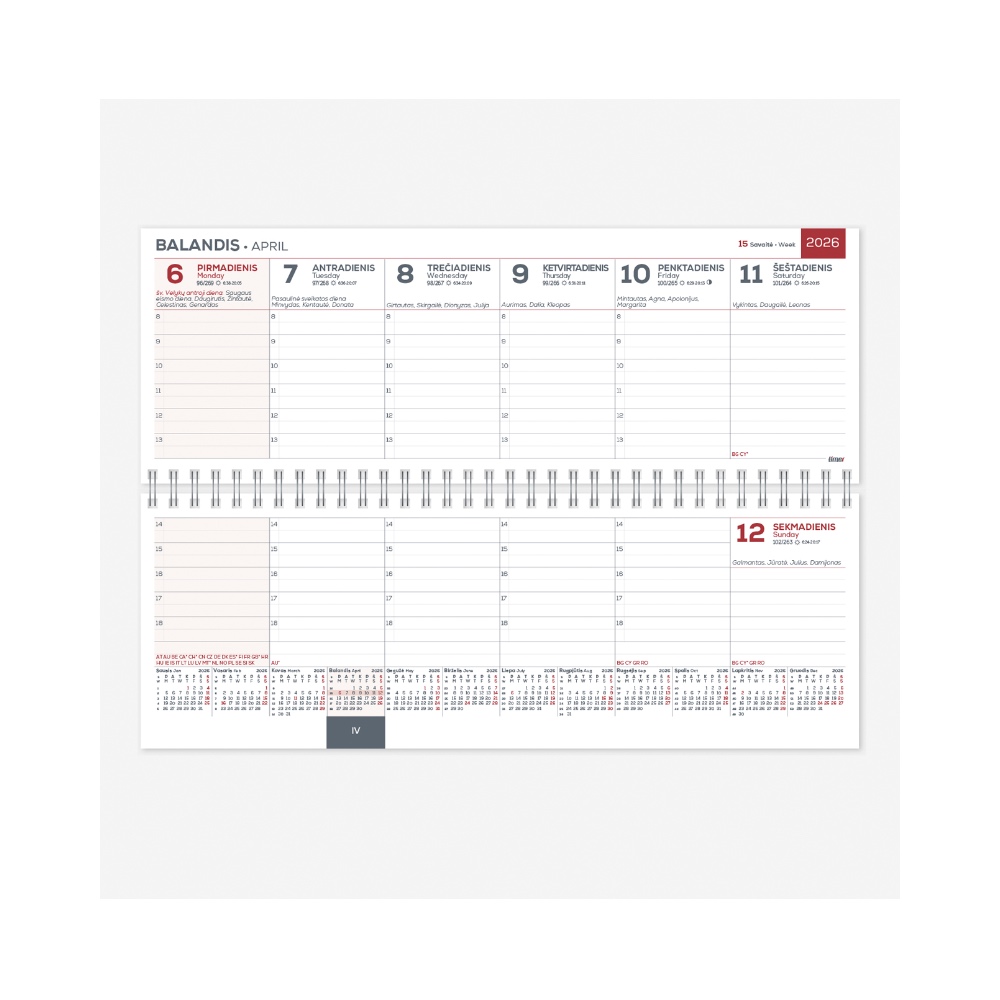 Kalendoriaus dydis: 295 x 135 mm
