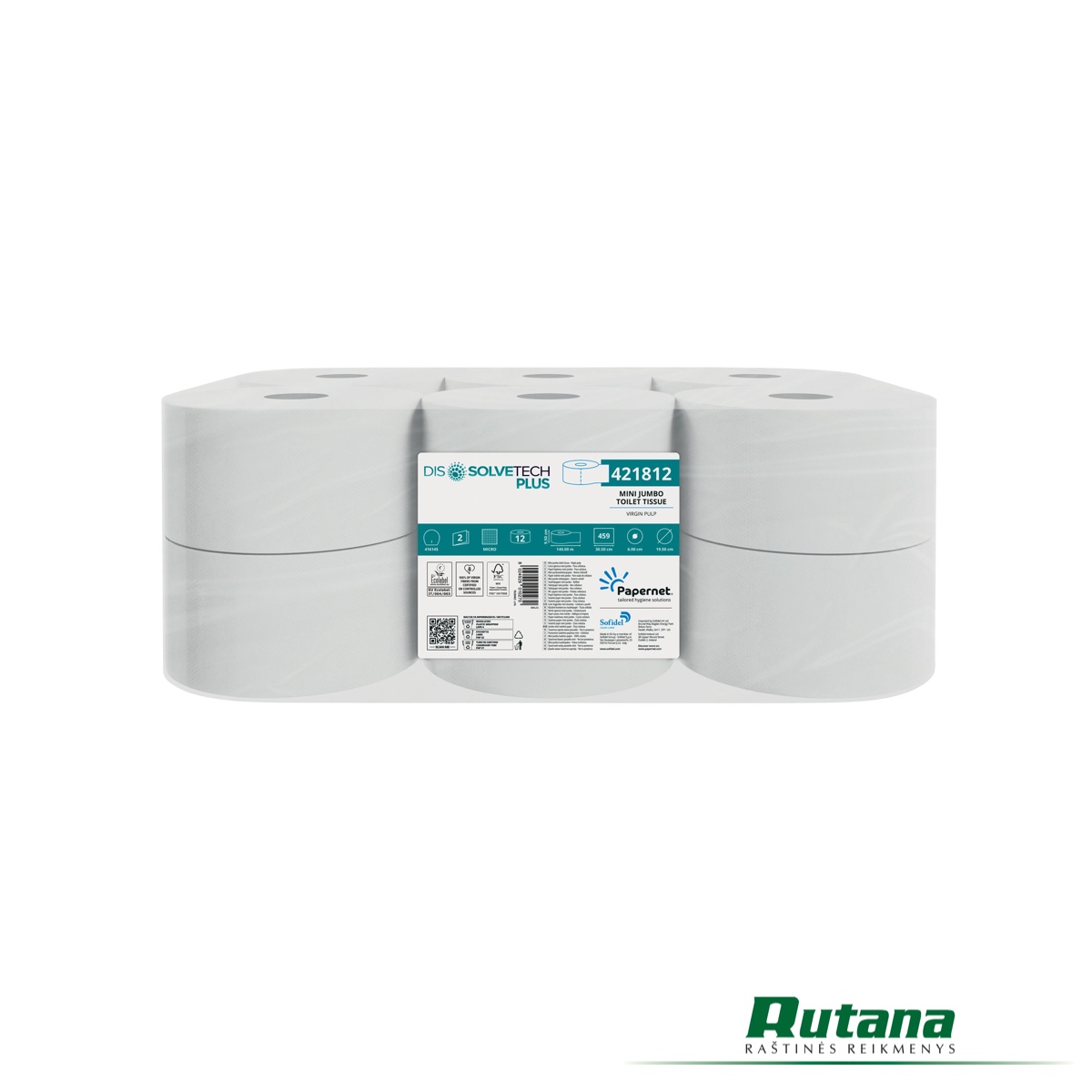 Tualetinis popierius rulonais Mini Jumbo „Dissolve Tech Plus“ 140m Papernet 421812