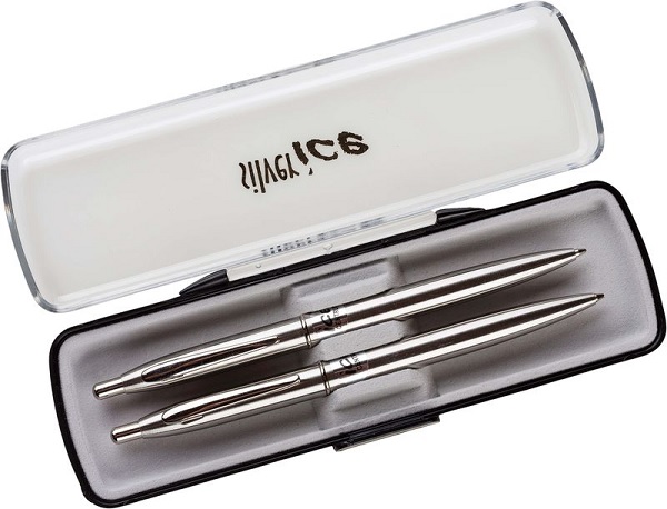 Automatinis tušinukas ir automatinis pieštukas pagaminti iš tvirto metalo. Tušinukui keičiama šerdelė Centrum 82093 arba 80357. Pieštukui naudojamos 0.5 mm storio grafitinės šerdelės. Supakuoti gražioje, su uždaromu dangteliu, plastikinėje dėžutėje.