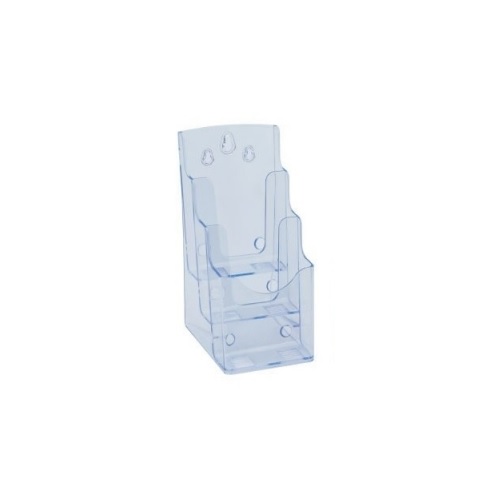 Laikiklis skirtas A6 formato spaudiniams, bukletams, brošiūroms, skrajutėms laikyti. Stovas yra universalus, gali būti pastatomas ant stalo arba pakabinamas ant sienos. Pagamintas iš labai tvirto ir ypatingai skaidraus plastiko. Plastiko storis 3 mm. Laikiklis yra 3 dalių.